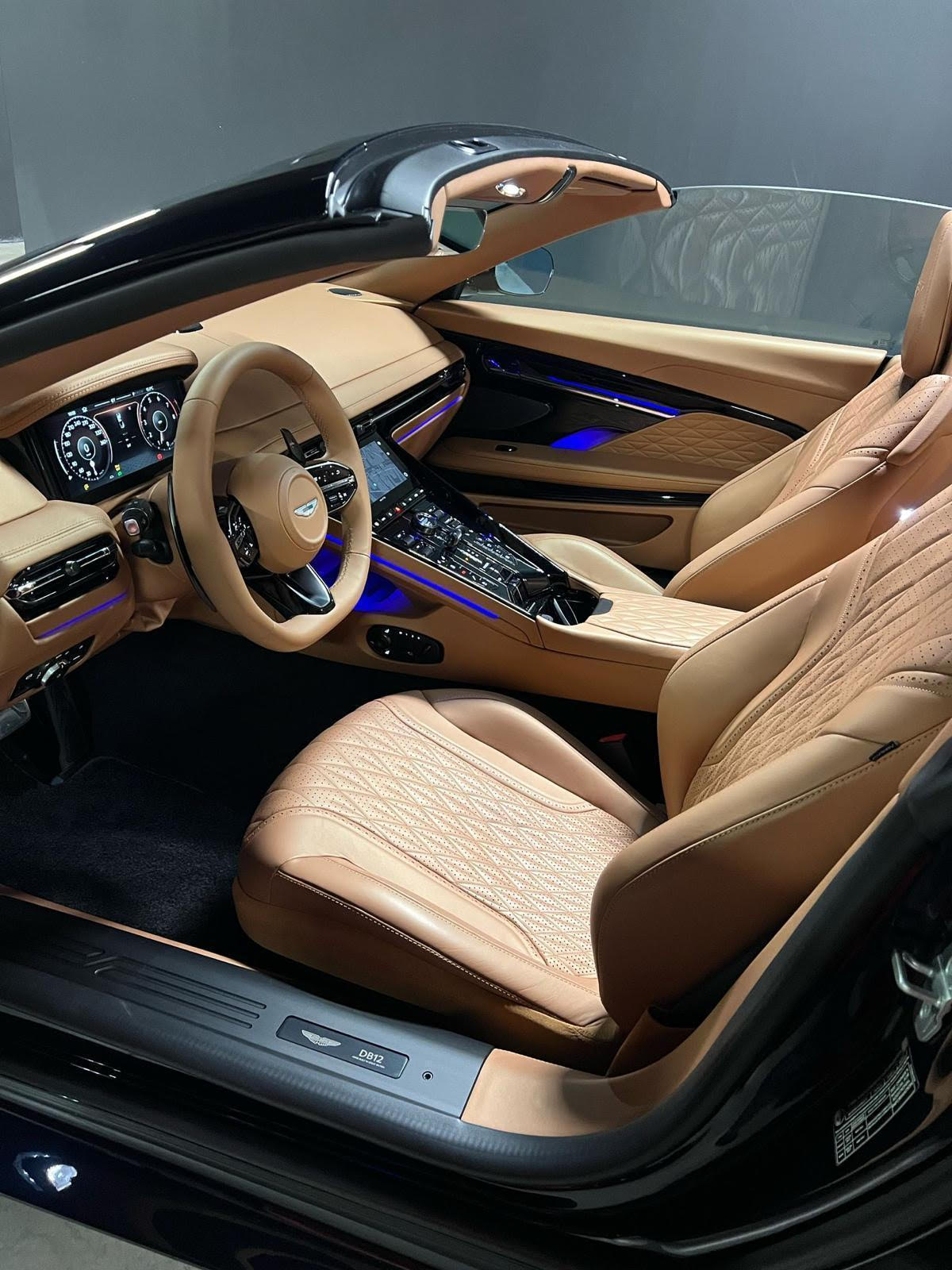 Inside, the cabin is a sanctuary of digital innovation and bespoke craftsmanship, featuring the all-new Aston Martin infotainment system. Whether the roof is up for refined silence or down to hear the V8 roar, the DB12 Volante offers an unparalleled sensory experience.