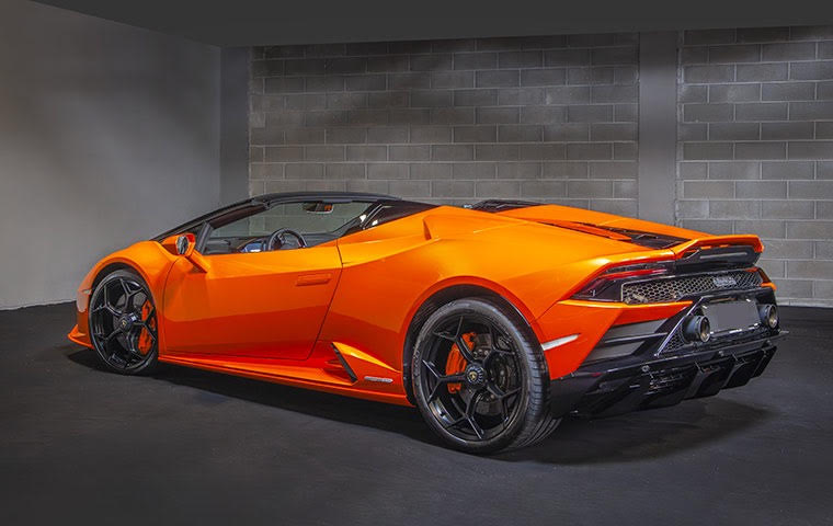 Live the thrill of raw performance with the Lamborghini Huracán Evo Spyder.